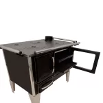 – Frente, costados, puertas, horno, bandejas doble confeccionadas planchas de acero carbono laminado frío 0.8 ml. Espesor.
